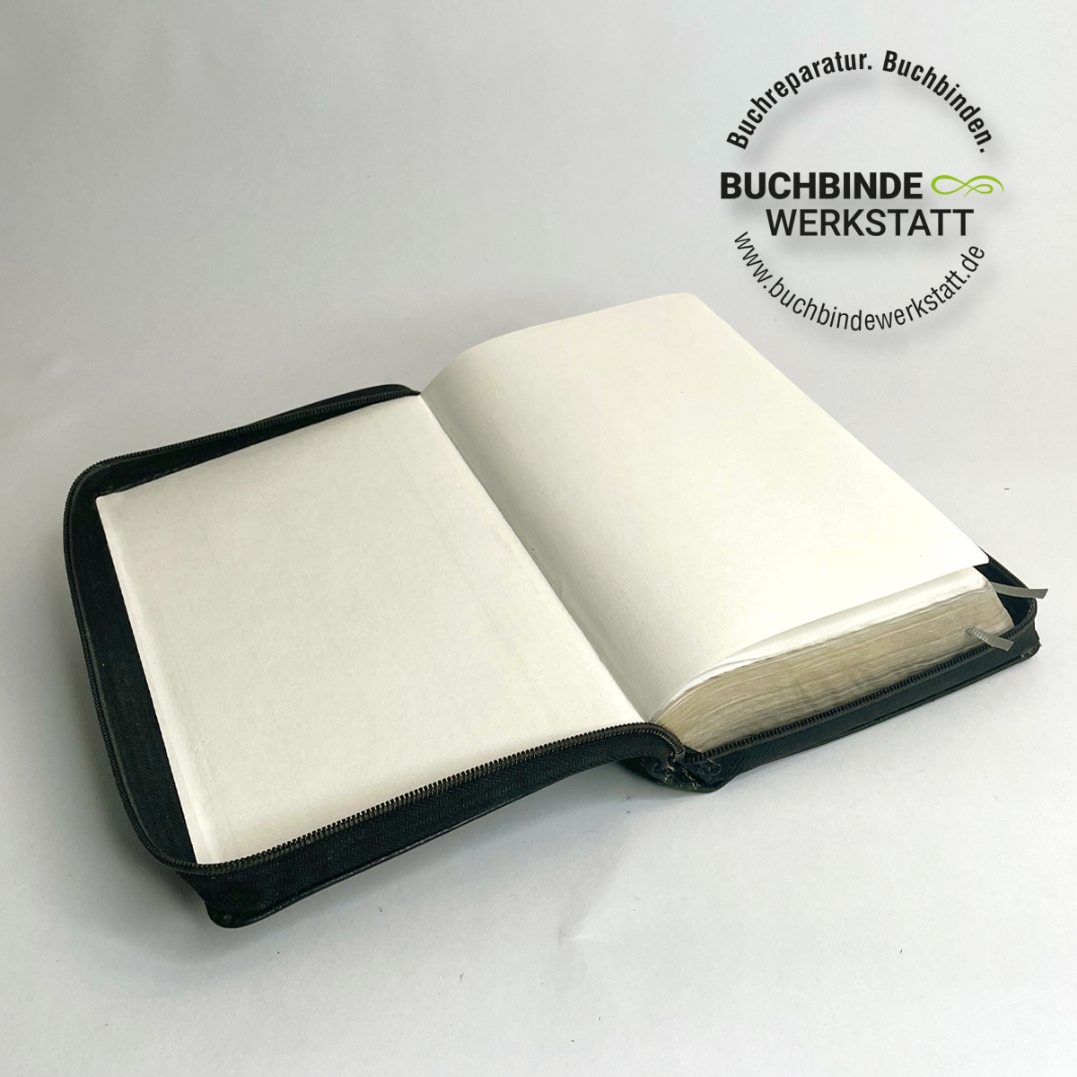 „Ich habe meine Bibel, die eigentlich schon ein Totalschaden war, zur Buchbinderwerkstatt geschickt. Als ich meine Bibel zurückbekommen habe, war ich richtig begeistert. Ich kann Herrn Beilker von Buchbinderwerkstatt mit gutem Gewissen empfehlen.“