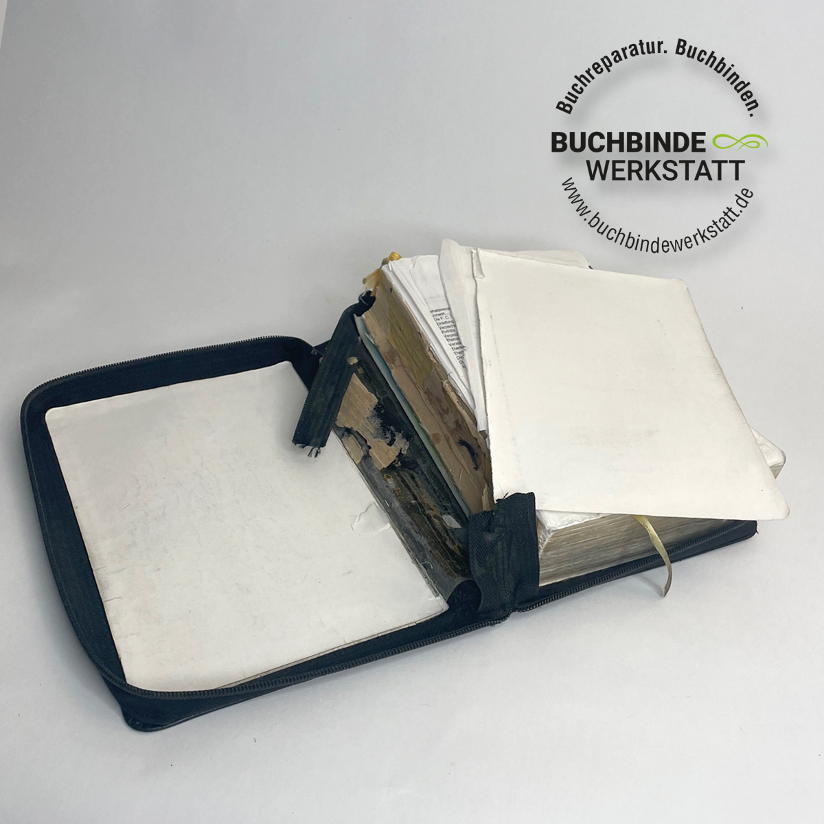 „Ich habe meine Bibel, die eigentlich schon ein Totalschaden war, zur Buchbinderwerkstatt geschickt. Als ich meine Bibel zurückbekommen habe, war ich richtig begeistert. Ich kann Herrn Beilker von Buchbinderwerkstatt mit gutem Gewissen empfehlen.“